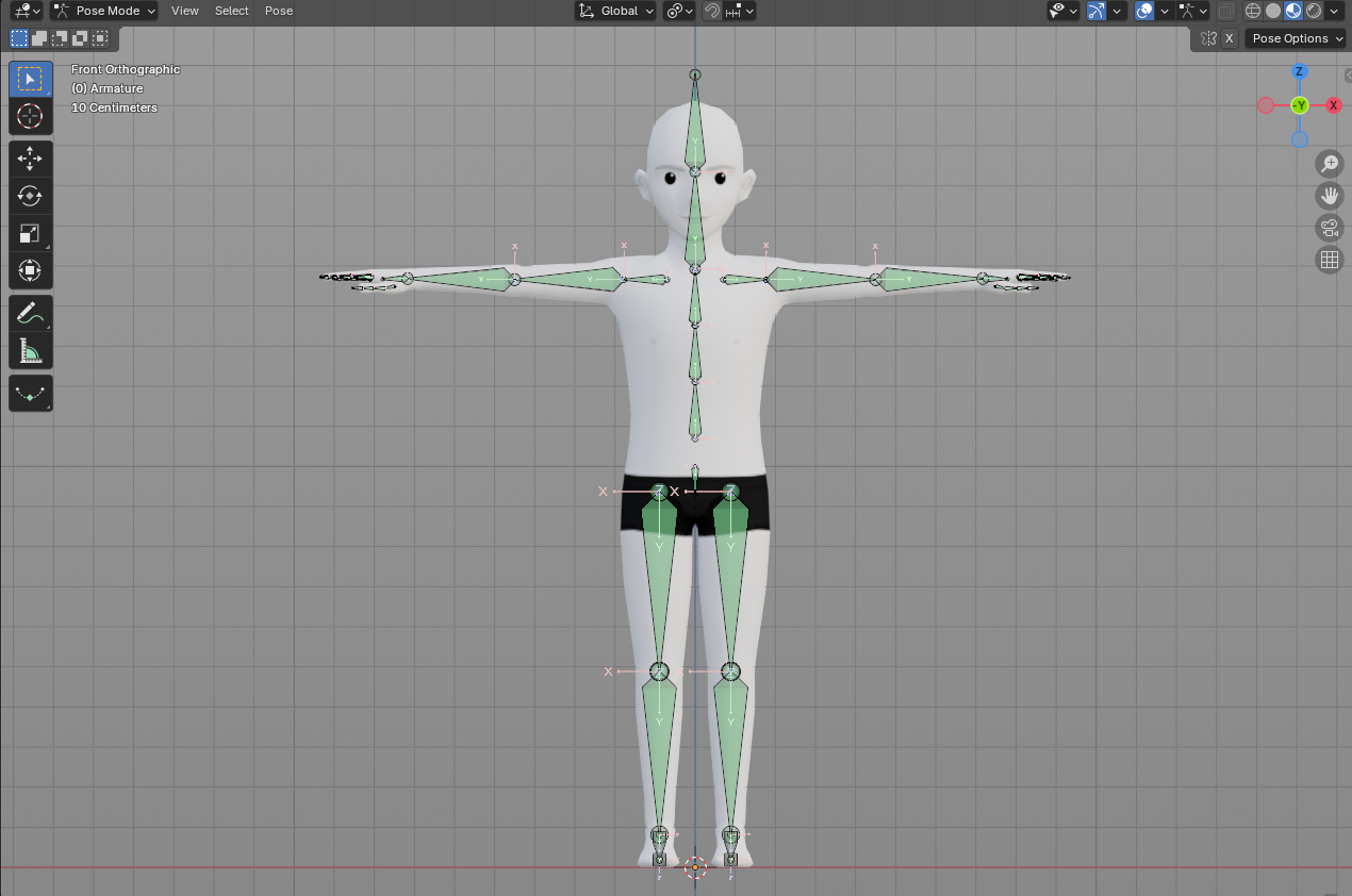 This is the bone orientation for Rig 1.0. As it is right now, it’s not possible to mirror behavior on the shoulders, arms, hands, or fingers.