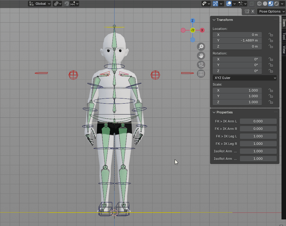 - Global/Switch: global controls, such as the root and spine ones, as well as shoulders. Controls with any custom attributes are also in this collection.