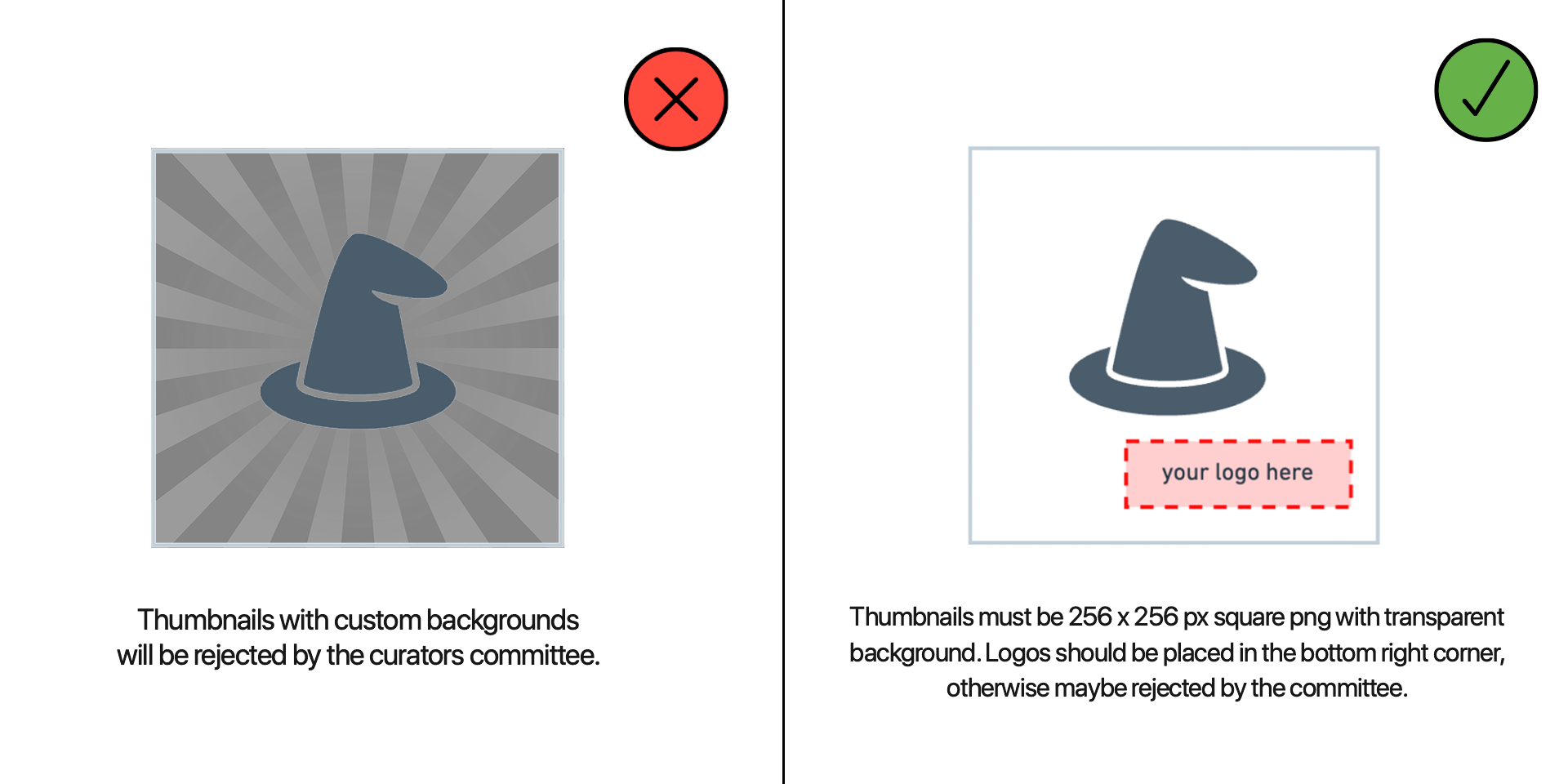 ⚠️ Having a good render of your wearable is crucial in making it more appealing to potential users in the marketplace. It’s important to avoid adding any graphics other than the wearable itself, because this may cause the curation committee to reject it.![]()