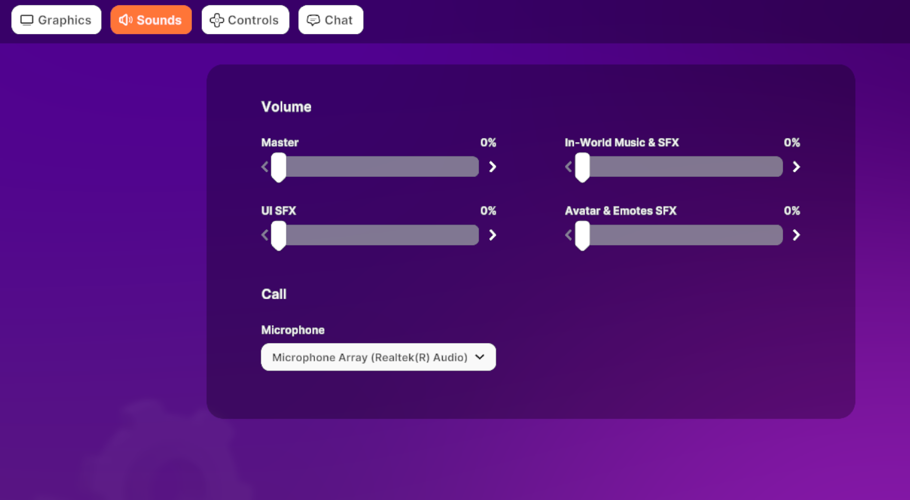 • Avatar & Emote SFX: Affects sounds from avatars and Emotes with sound effects